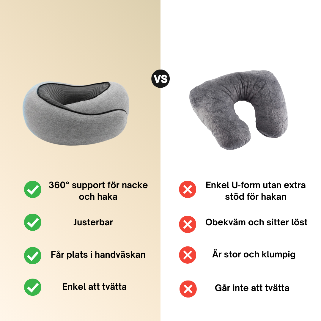 Jag gillar verkligen hur den här resekudden fungerar jämfört de traditionella varianterna. Mycket bekvämare för nacken.